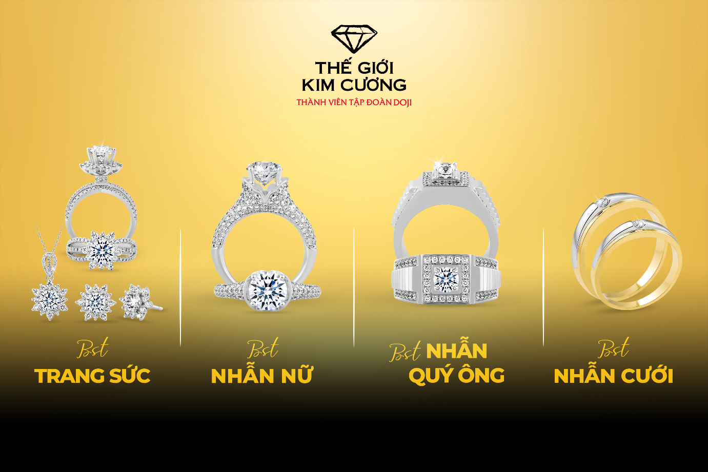 Đến với Thế Giới Kim Cương, Quý khách hàng còn có cơ hội thỏa sức chọn lựa hàng ngàn thiết kế trang sức tinh tế đáp ứng được mọi nhu cầu của Khách hàng từ BST Nhẫn nữ đẳng cấp và tinh tế đến từng chi tiết, BST Hoa tai tỏa sáng rạng ngời, BTS Nhẫn cưới bên nhau trọn đời… Ngoài ra Thế Giới Kim Cương còn đặc biệt nổi tiếng với BST Nhẫn Quý ông với các thiết kế sang trọng và đẳng cấp.